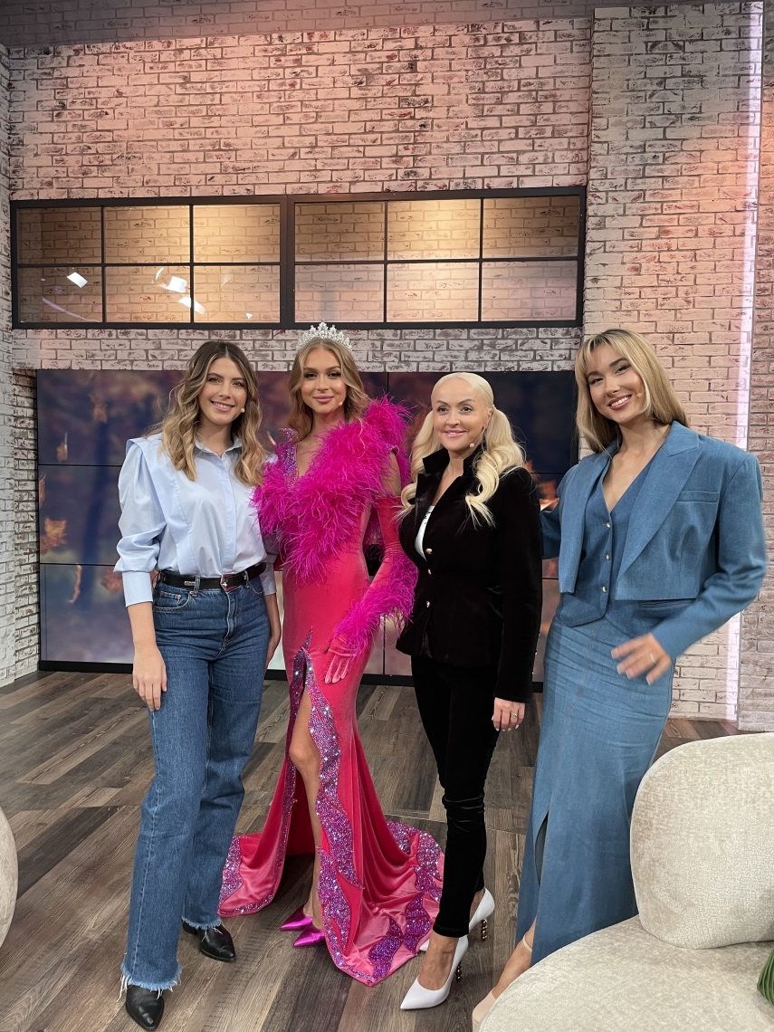 To niezwykłe spotkanie z Kornelią i Dorotą było okazją, by poznać tajemnice sukni, które II Wicemiss zabierze ze sobą do Egiptu. Szczególnie zachwycająca była suknia finałowa, w której Kornelia pojawi się na światowej scenie konkursowej. To właśnie w niej zjawiła się w studio - welurowa kreacja w odcieniach różu, zdobiona misternie umieszczonymi różowymi piórami, subtelnie dopasowana do sylwetki Kornelii. Całość uzupełniają eleganckie rękawiczki oraz efektowne rozcięcie na środku, które dodaje sukni niepowtarzalnego charakteru.