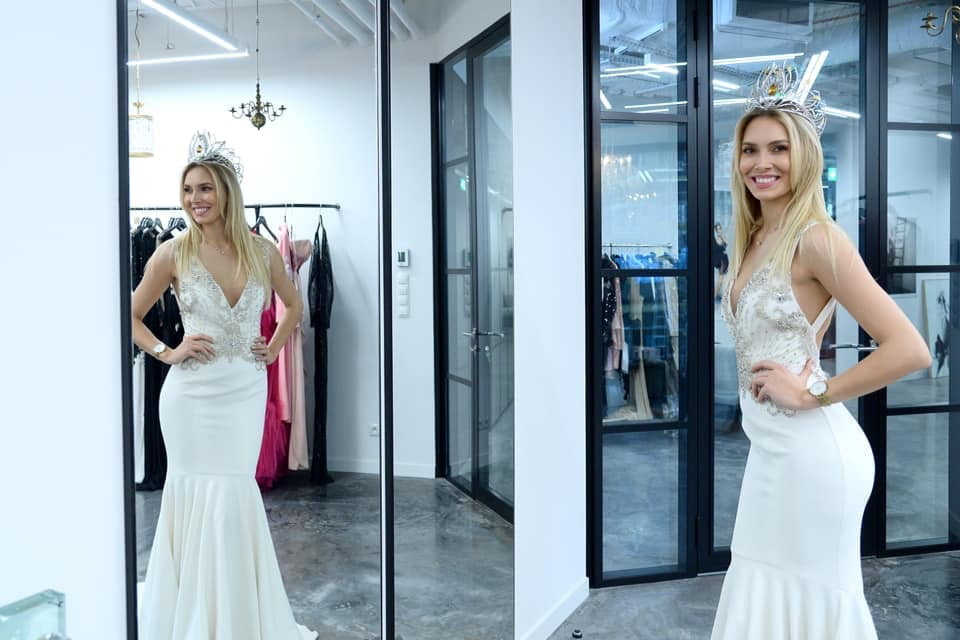 Milena Sadowska w sukniach Paprocki&Brzozowski na wybory Miss World 2019