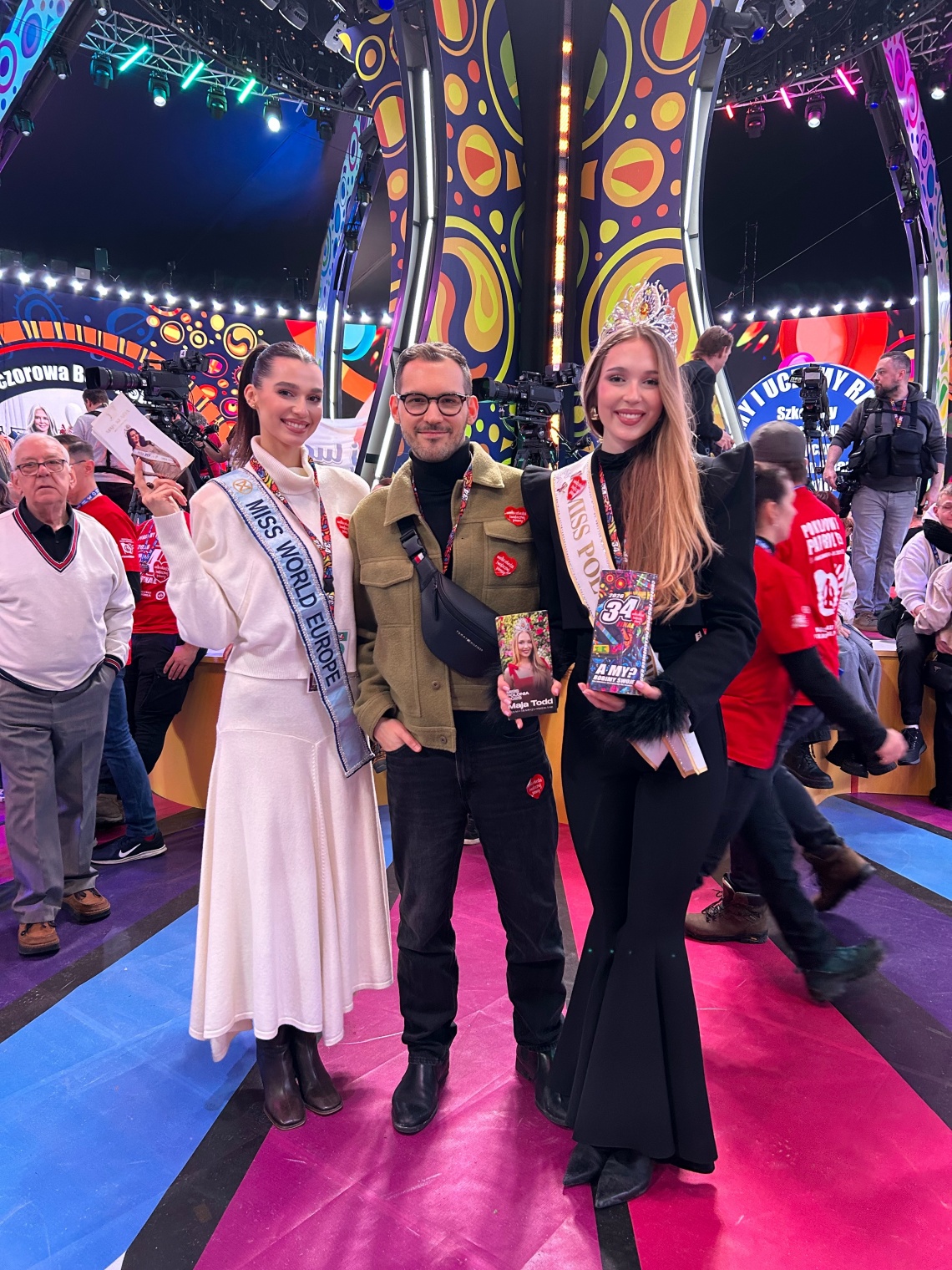 Miss Polonia 2025 Maja Todd, Miss Polonia 2024 Maja Klajda oraz producent konkursu Miss Polonia – Igor Włodarczyk. Razem z tysiącami wolontariuszy zbierali środki do puszek, wspierając tegoroczny cel WOŚP i spotykając się z uczestnikami finału.
