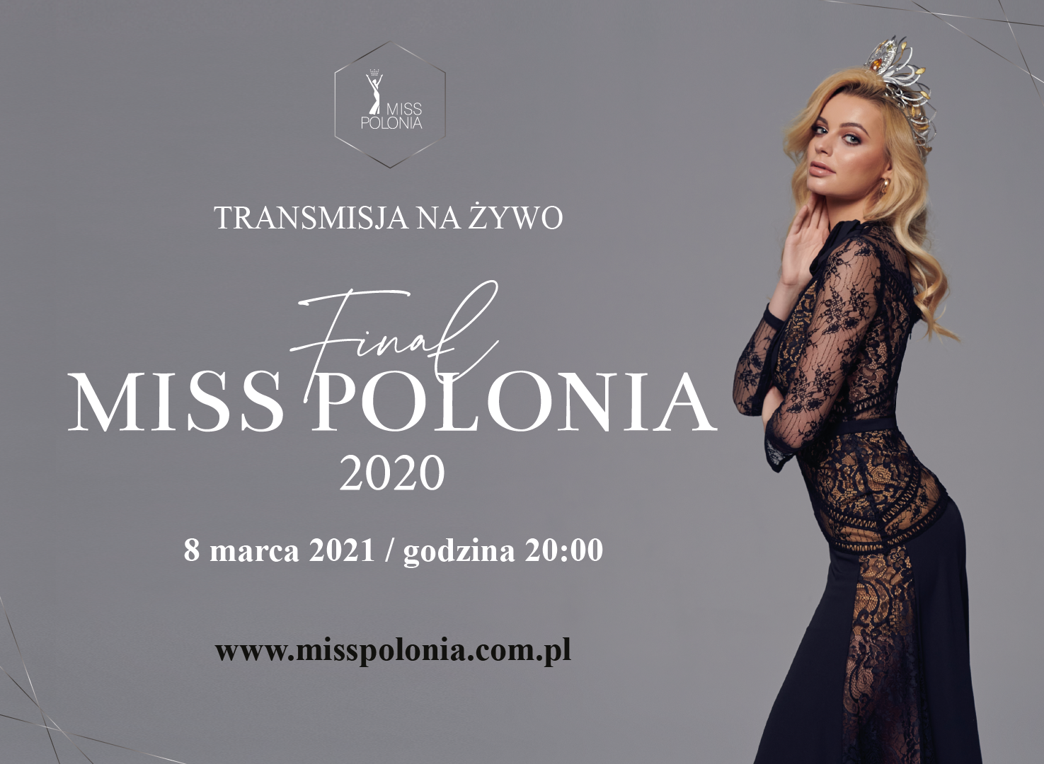 Zapraszamy na transmisję z gali finałowej Miss Polonia 2020. 8 marca 2021, w Dzień Kobiet o godz. 20:00 na żywo z Teatru Wielkiego w Łodzi.